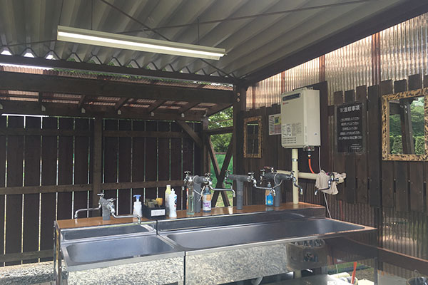 屋根付き炊事場ではPM20:00まで湯沸し器でお湯が出るので、寒い時期にも安心してご利用いただけます。