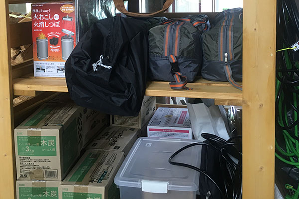 キャンプに必要な道具のレンタルも承ります。足りない道具はこちらでお探しください。
