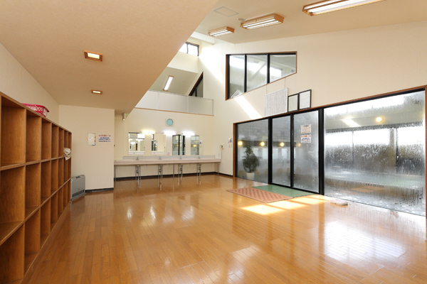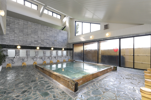 こちらも人気のある檜(ヒノキ)を使った内風呂です。 天井が高く開放感のある室内は、大人が15人入れる広さの湯船と16人が同時に使用できる洗い場があり、大人数での合宿時にも対応するお風呂です。もちろん檜の香りも楽しめ、贅沢なひと時を過ごすことができます。また